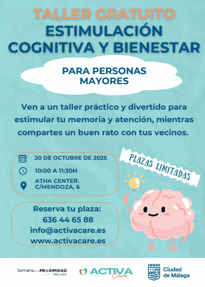 En «ActivaMente en tu barrio», Taller de estimulación cognitiva y bienestar entrenaremos la memoria, la atención y la agilidad mental de forma dinámica, divertida y en compañía. Porque cuidar de nuestra mente y de nuestras relaciones sociales es tan importante como cuidar de nuestro cuerpo.